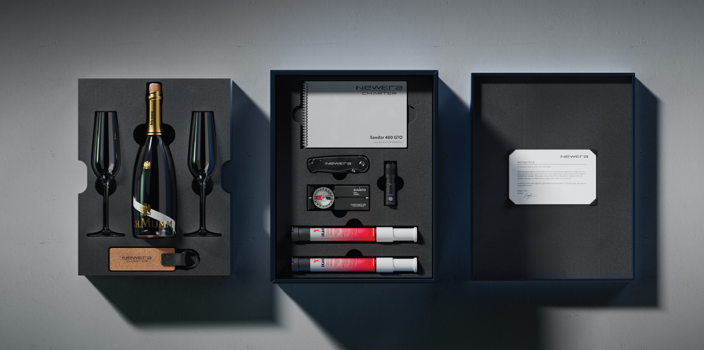 Created for Newera Yachting, this package was designed to transform the moment of yacht delivery into an experience of elegance and emotion. Rather than simply handing over a set of keys, it celebrates ownership as a milestone, a new chapter of life at sea.